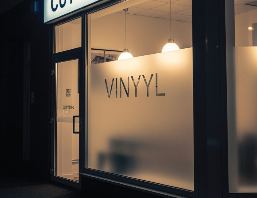 Professional cut vinyl window graphics for storefronts, office doors, and promotional displays with excellent visibility and weather resistance.
