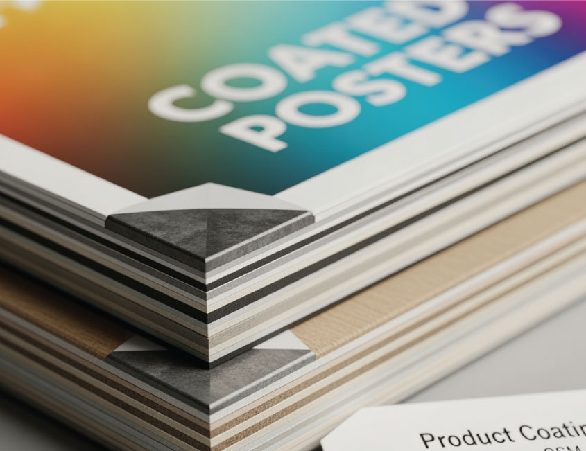 Comprehensive coated printing services including oversized protective posters, large format coated printing, and professional coated displays for various applications.