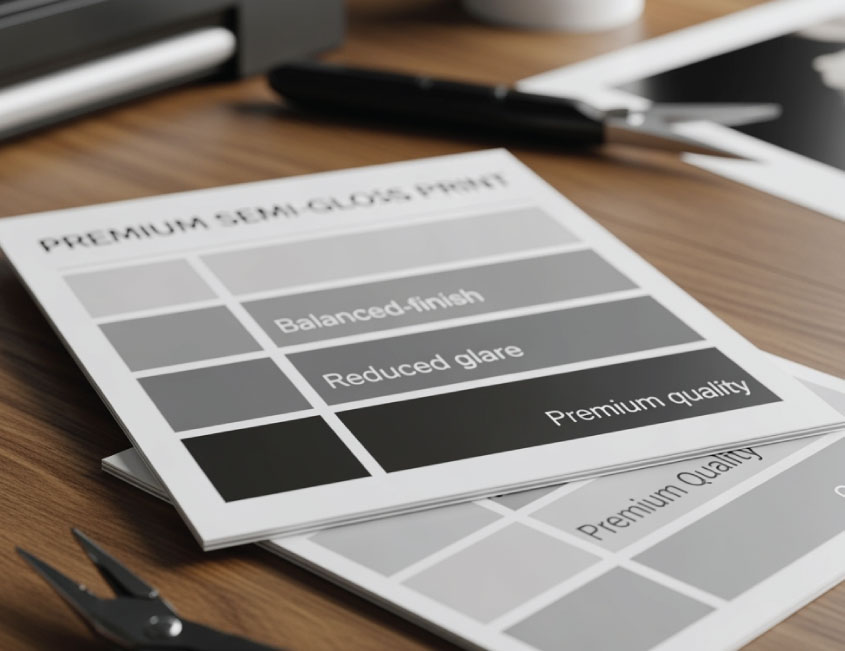Professional standard semi gloss printing services including balanced finishes, reduced glare, and premium quality prints for businesses of all sizes.